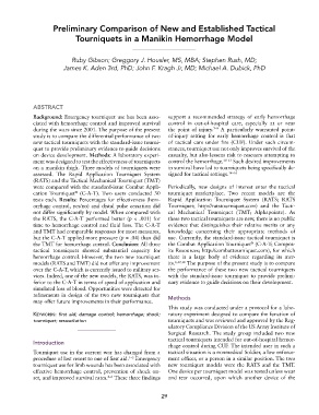 ment was designed to test the effectiveness of tourniquets control the hemorrhage. 10–13 Such desired improvements