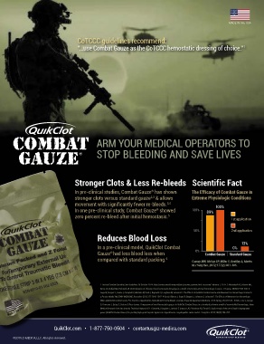 When QuikClot® Combat Gauze ™ Is Used in a Hypothermic Hemodiluted Porcine Model. Journal of Special Operations Medicine. 2015 Spring;15(1):57-60. 5 Rall J, Cox J, Songer