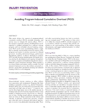 cumulative overload (PICO), provides examples, and ing and eventual injury. 2,5–8 The purpose of this article