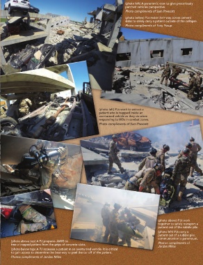 out of the rubble pile. (photo below top) A PJ accesses a patient in an overturned vehicle. It is critical