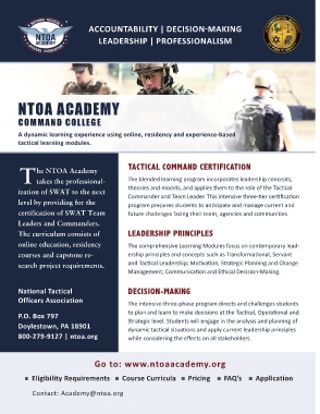 ization of SWAT to the next Commander and Team Leader. This intensive three-tier certification