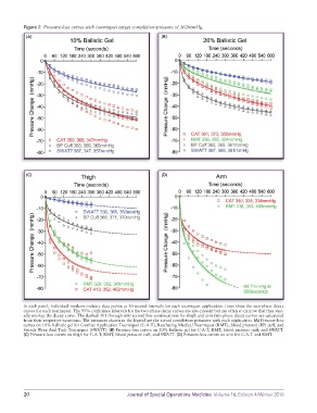 curves on 10% ballistic gel for Combat Application Tourniquet (C-A-T), Ratcheting Medical Tourniquet (RMT), blood pressure (BP) cuff, and