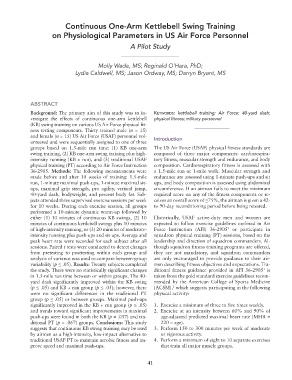 Background: The primary aim of this study was to in- Keywords: kettlebell training; Air Force; 40-yard dash;