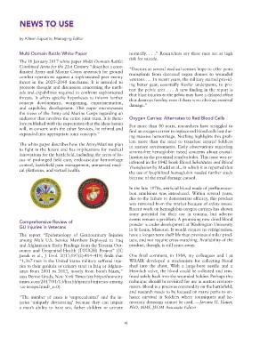 will, in concert with the other Services, be refined and find an oxygen carrier to replace red blood cells lost dur-
