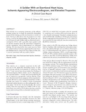 article is the first case report of a Soldier with an exer- oratory workup. The troponin level was abnormal at