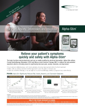 To get started and to see more clinical data, visit www.Alpha-Stim.com or call 1-800-foR-pAin (in USA) or +940-328-0788 (Outside USA).
