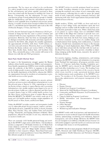 in eastern Burma. Later in 1998, mobile health workers from • Community and Health Education And Promotion Pro-