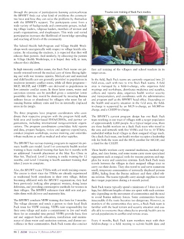 In high-intensity conflict zones, the Back Pack teams are pri- first aid training of the villagers and school teachers in its
