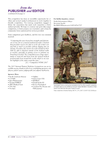 • TSSi Ops • Carolina Fire Rescue and of the last station at the SOARescue National Tactical Medicine Competition. Team