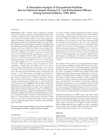 fatal injury occurred during operations by a Special Weapons tional study by the National Tactical Officers Association and