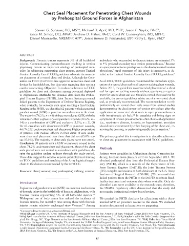 Keywords: chest; wound; seal; prehospital; military; combat (JTS) compiles and maintains both databases at the U.S. Army