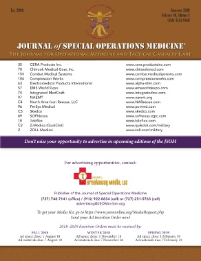 Global Distribution advertising space is limited, increasing your visibility to Publisher of the Journal of Special Operations Medicine