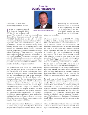 GREETINGS to the SOMA membership. Not only do mem-
