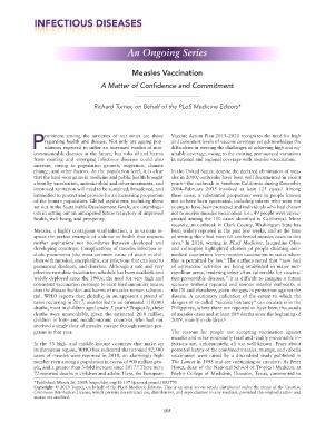 Measles, a highly contagious viral infection, is in various re- been widely reported in the past few weeks, and at the time
