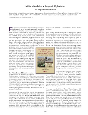 Greaves I, ed. Military Medicine in Iraq and Afghanistan: A Comprehensive Review. Taylor & Francis Group, LLC, CRC Press,