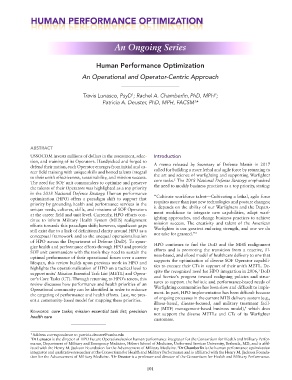 1 Dr Lunasco is the director of HPO Future Operations/senior human performance integrator for the Consortium for Health and Military Perfor-