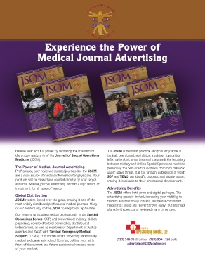 Global Distribution advertising space is limited, increasing your visibility to Publisher of the Journal of Special Operations Medicine