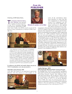 Journal’s many contributions to Tactical Combat Casu- ing TCCC happen in the Army. He initiated training and