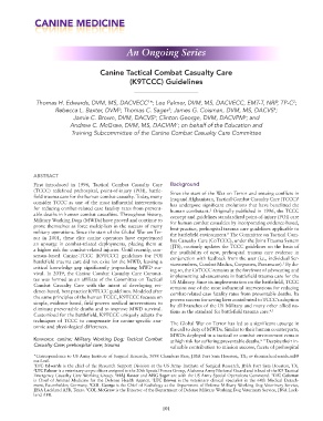 vival. In 2019, the Canine Combat Casualty Care Commit- implementing advancements in battlefield trauma care for the
