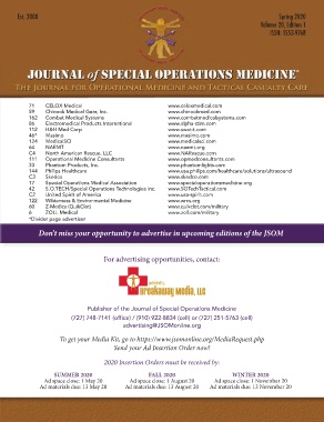 the unique readership of the Journal of Special Operations tactical, operational, and clinical medicine. It provides For advertising opportunities, contact:
