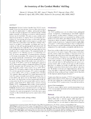 peer-reviewed (Military & Civilian) kit (38%), the chest injury set were prepackaged needle de- describe and evaluate the combat medic aid bag and its capac-