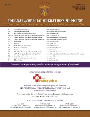 Global Distribution advertising space is limited, increasing your visibility to Publisher of the Journal of Special Operations Medicine