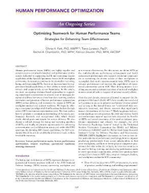 Keywords: human performance teams; human performance   psychology  professionals  from  across  subspecialties  to  best