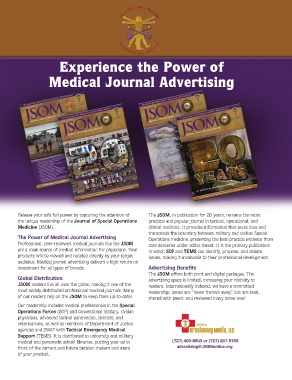 Global Distribution                                   advertising space is limited, increasing your visibility to                                 Publisher of the Journal of Special Operations Medicine