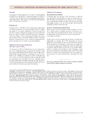 APPENDIX G: ADDITIONAL INFORMATION REGARDING OFF-LABEL USES IN CPGS