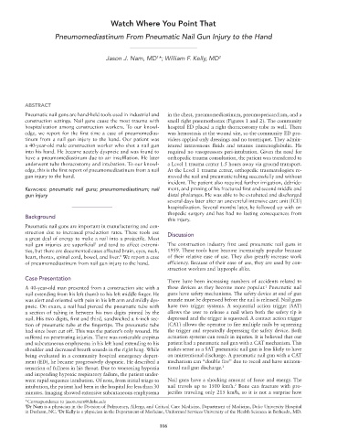 construction settings. Nail guns cause the most trauma with small right pneumothorax (Figures 1 and 2). The community