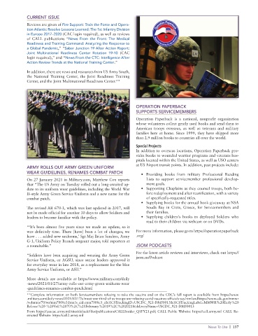 WEAR GUIDELINES, RENAMES COMBAT PATCH • Providing books from military Professional Reading