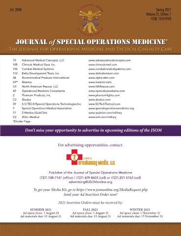 Global Distribution advertising space is limited, increasing your visibility to Publisher of the Journal of Special Operations Medicine