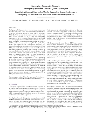 Background: EMS personnel are often exposed to traumatic Previous reports have identified that clinicians in direct pa-