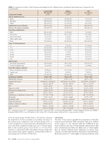 TABLE 3 Employment Profile of EMS Professionals Stratified by Prior Military Service and Specific Stress Syndromes Compared to the