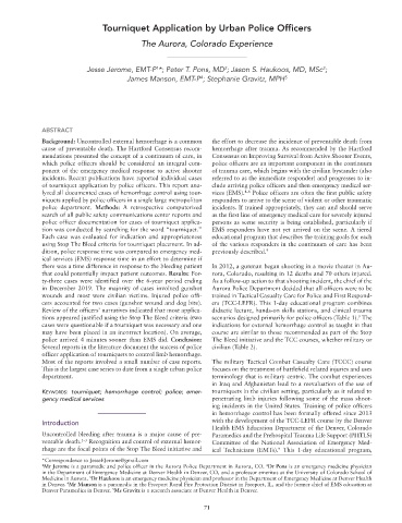 Keywords: tourniquet; hemorrhage control; police; emer- tourniquets in the civilian setting, particularly as it related to