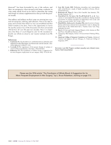 trated in blood transfusion. Ann Surg. 1916:618–623. Keywords: Lest We Forget; combat casualty care; blood; trans-