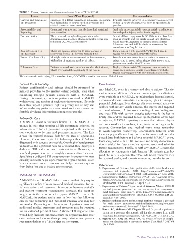 TABLE 1 Events, Lessons, and Recommendations From a TBI MASCAL