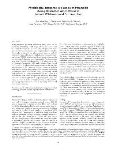 1 Ben Meadley is a PhD candidate and Dr Karen Smith is a scientist in the Department of Paramedicine and the Paramedic Health and Wellbeing