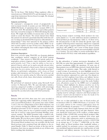 cases received blood products. All patients were males (Tables ministration within the AFRICOM theater of operation. This