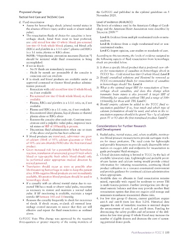 (RBCs) and platelets in a 1:1:1 ratio*; plasma and RBCs Level C: Expert opinion, case studies or standards of care.