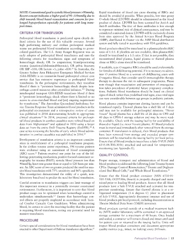 enacted in other Department of Defense transfusion algorithms. quality metrics (e.g., intact, no leaking) every 24 hours.