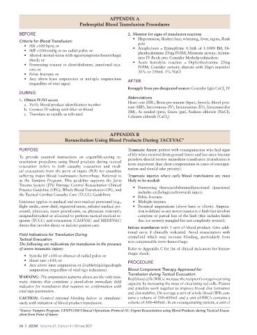 of severe traumatic injury: Refer to Appendix C for list of clinical indicators for hemor-