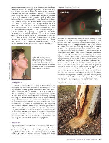 Processionary caterpillars are covered with very short fine hairs FIGURE 3 Setae lodged in the eye.