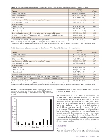TABLE 3 Multivariable Regression Analysis for Comfort Level With Tactical EMS Providers Carrying Firearms