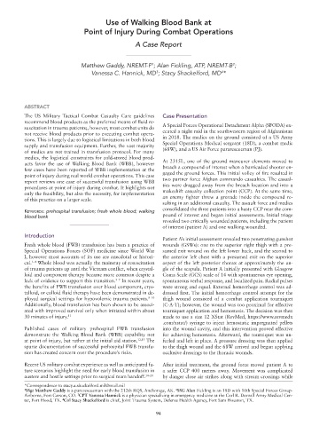 sparse documentation of successful prehospital FWB transfu- to the thigh wound and the 68W arrived and began applying
