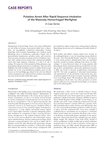 Keywords: pulseless arrest; traumatic arrest; rapid sequence in- a preintubation shock index may allow prediction of which