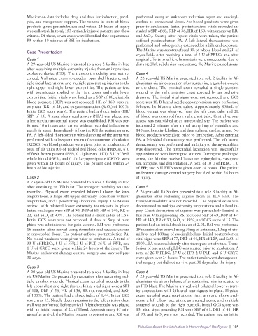 left upper chest and right thorax. Initial vital signs were a SBP an IED blast. The Marine arrived with bilateral lower extrem-