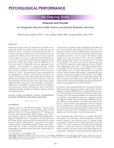 tion practices for veterans. Directions for future research are In response to the suicide epidemic for US veterans, the Presi-