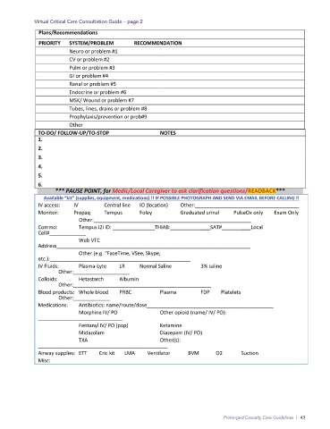 Virtual Critical Care Consultation Guide – page 2 Prolonged Casualty Care Guidelines | 43