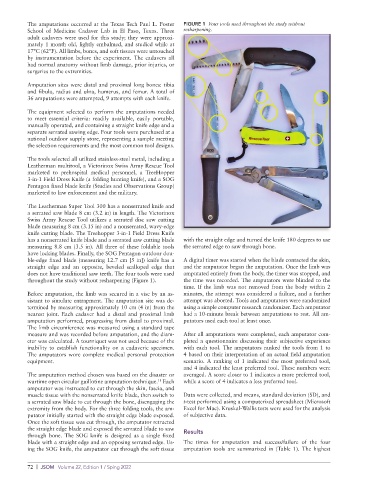 nearest joint. Each cadaver had a distal and proximal limb had a 10-minute break between amputations to rest. All am-